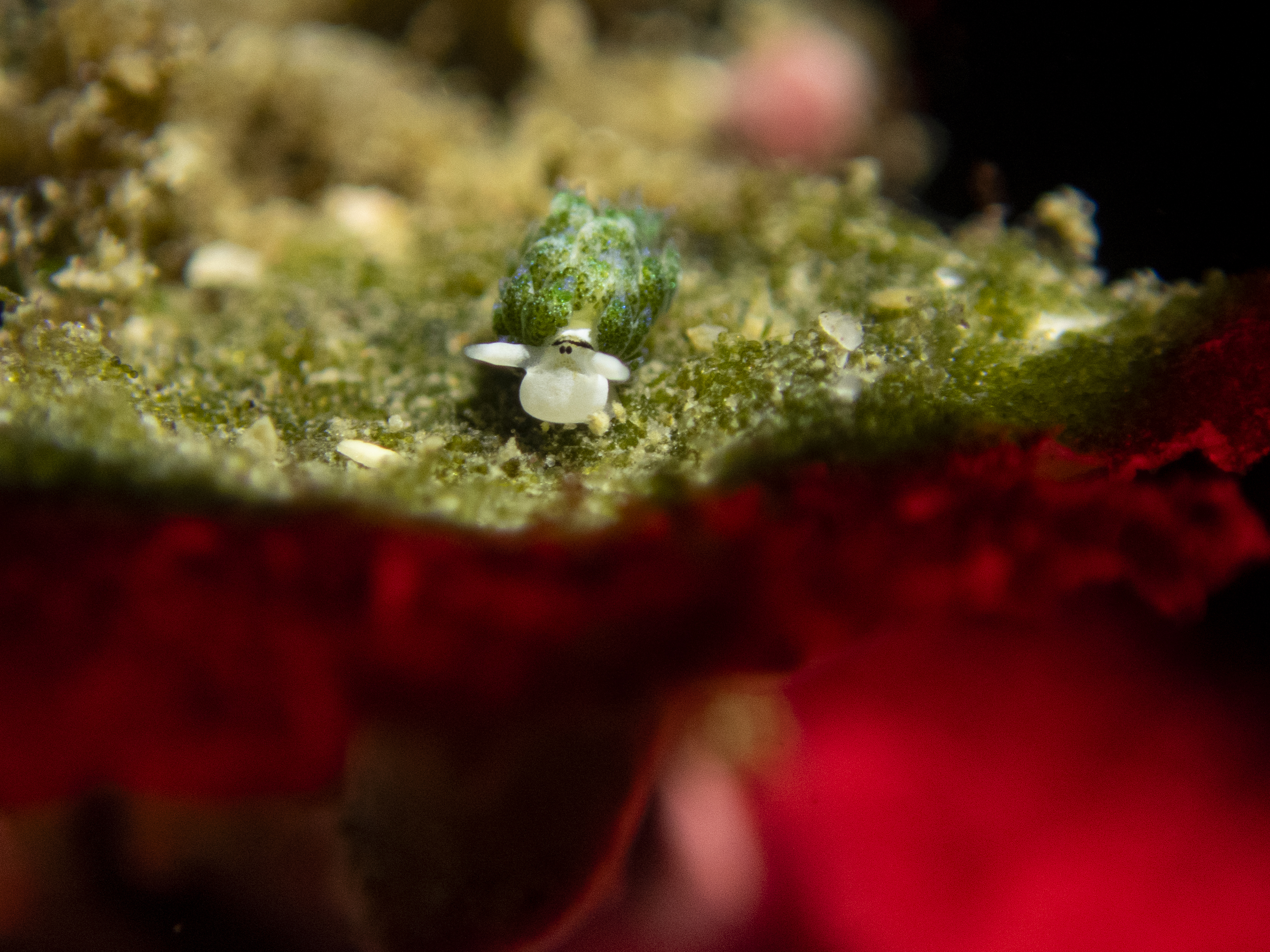 海面安靜後,珊瑚開口、甲殼類出巡。提供主燈與紅光,一起找那些白天不肯出來的朋友。